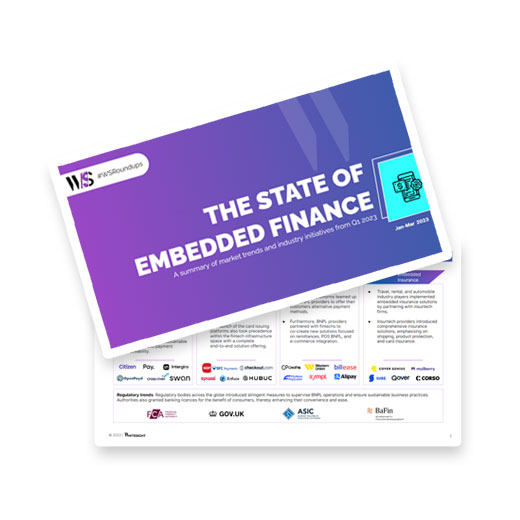 Embedded finance is experiencing an unprecedented surge in availability across multiple consumer touchpoints, enabling businesses to offer enhanced customer experiences and generate new revenue streams. Explore the progress in the embedded finance through the first quarter of 2023 across use cases, product launches, investments, partnerships, regulatory oversight, and more.