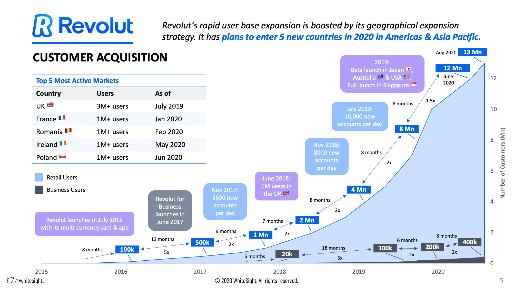 Revolut has taken a different route to banking license and mostly operates in various countries with its e-money license. This has allowed Revolut to ‘Lift and Shift’ its products and operations rather easily to multiple countries quickly and resulted in a massive customer base across 35+ countries.